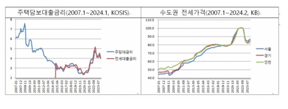 본래 주택담보대출은 과거에도 존재했던 개념이지만, 전세자금대출은 비교적 최근에 일반화되었다. 대출이 실행된 부분 만큼 금리라는 충격에 대한 반응이 나타나는 것으로 해석하는 것이 합리적이라고 하겠다.